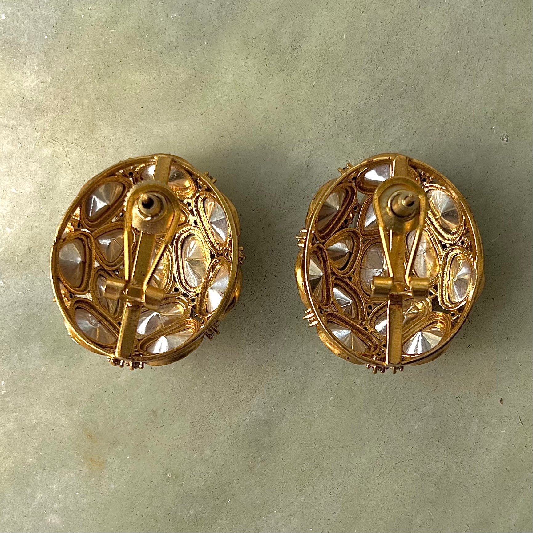 Silver Foiled Moissanite Diamond Lookalike Polki Kundan Stone Oversized Statement Studs encrusted with high quality white zircon stones Kundan Polki. Truly Lux wear oversized tops for a classy wedding wear look!