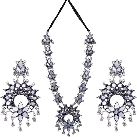 Aditi Mirror Oxidised Set with Necklace and Earrings