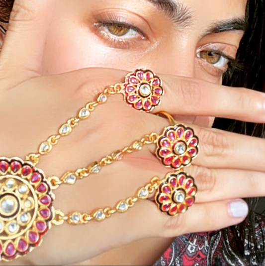Gold Handpainted Rajputi Princess Portrait Earrings