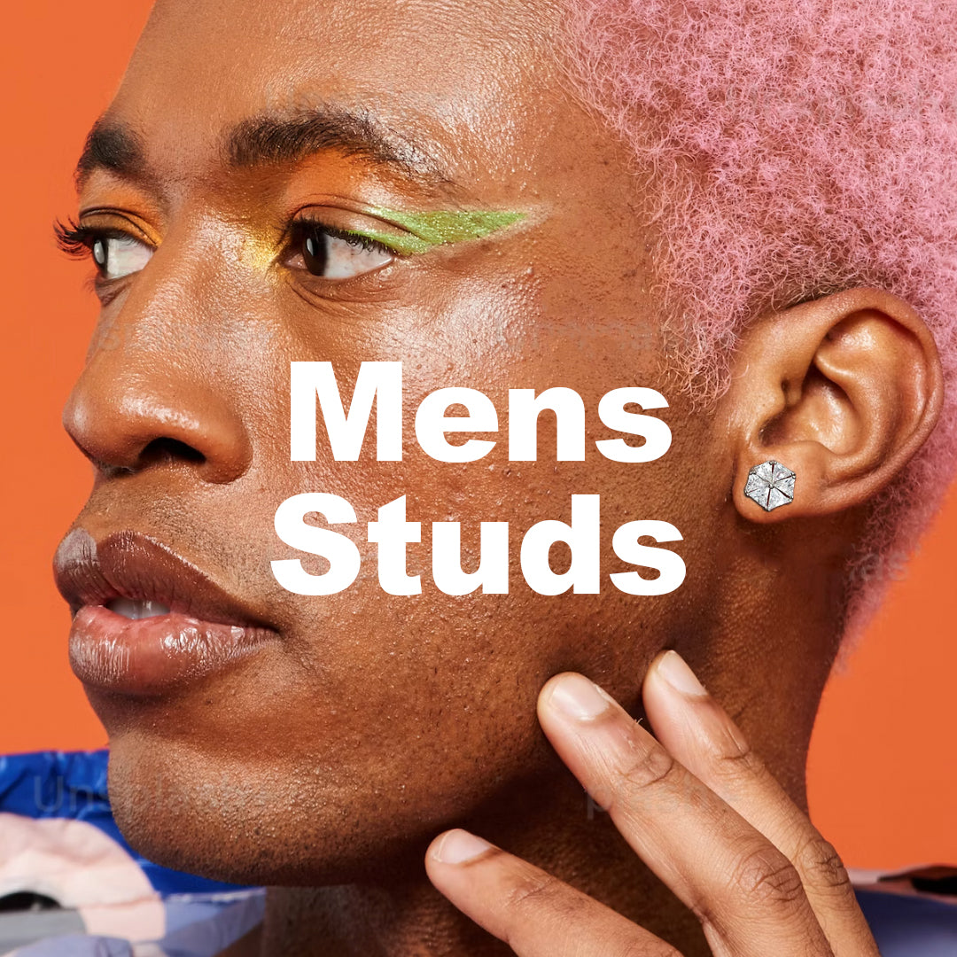 These smart Hexagon Shaped Solitaire looking Ear studs are sure to uplift your look and add more edge. Mens fashion Diamond shaped Silver Coloured Stud Earrings or ear cuffs.